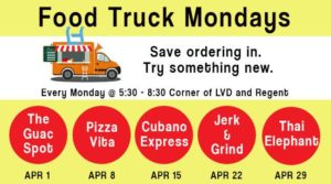 Every Monday we invite food trucks to help satisfy your appetite on the first day of the work week. Trucks will be parked on the corner of Liberty View Drive and Regent Street.