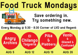 Save the ordering in, try something different. Trucks will be parked on the corner of Liberty View Drive and Regent Street.